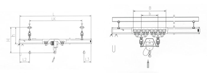 | 起重量(kg) 尺寸(mm) | L | LK | L2 | L3 | H | h | B | b | |