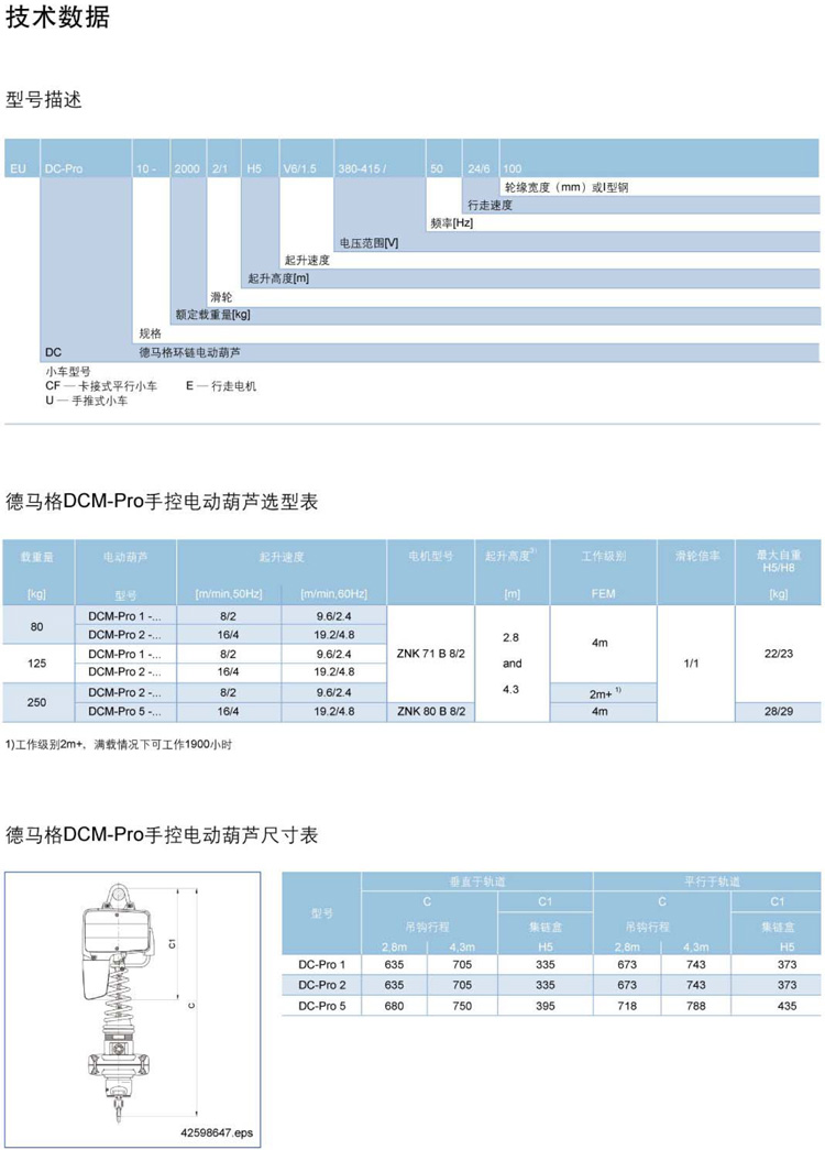 DCM-Pro 1-80kg 進口80kg德馬格手控電動葫蘆